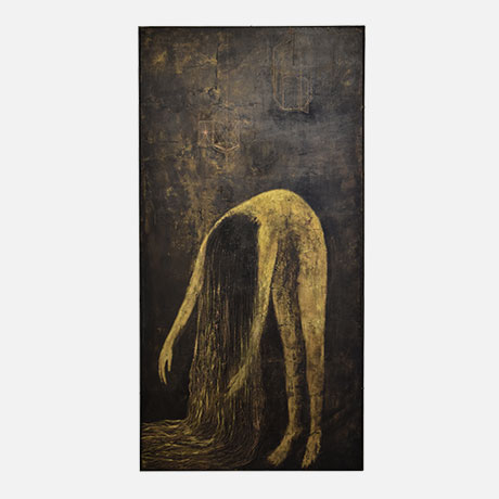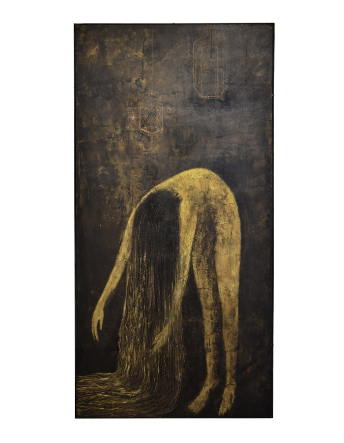 Pittura, scultura, arte video in un percorso ricchissimo e affascinante, estremamente omogeneo a sottolineare la coerenza del pensiero a partire da un allestimento, dal potente impatto visivo, concepito interamente site specific, come fosse un’unica installazione immersiva.