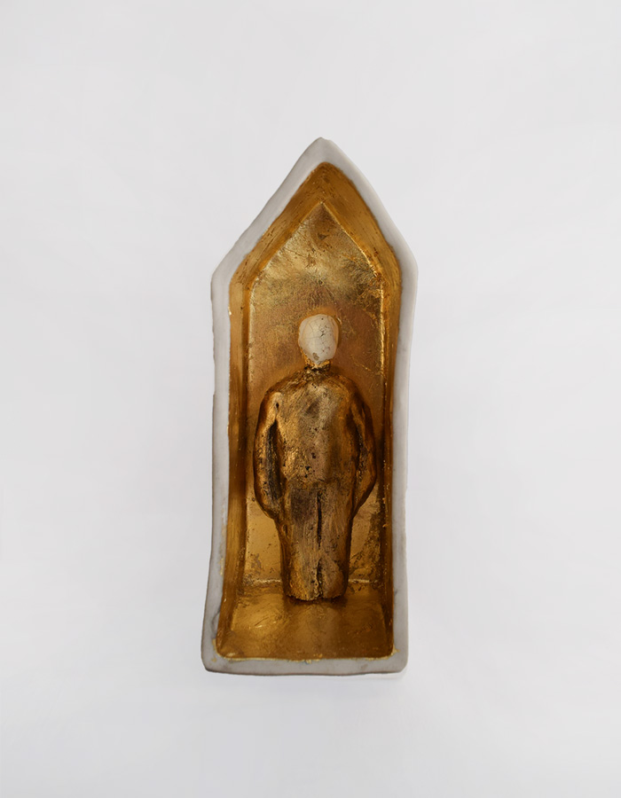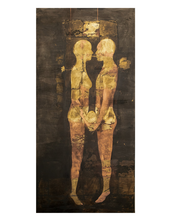 Rimuovendo il buio si genera la luce essenza della forma, il nero si tramuta in oro in un bicromatismo netto che ne sottolinea le antitesi, ma non esclude fusioni.
